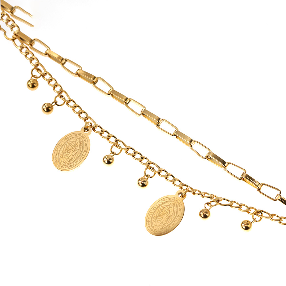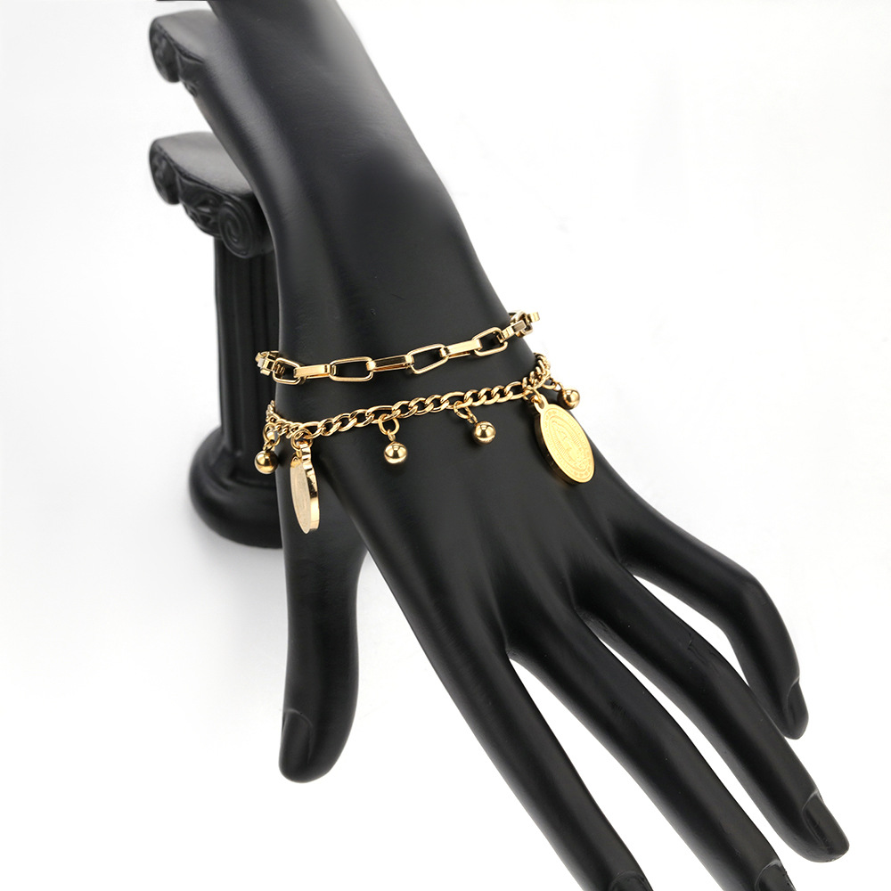 Bohemian Double Layer Titanium Steel Bracelet - Adjustable Gold Tone Chain for Couples & Free Spirits