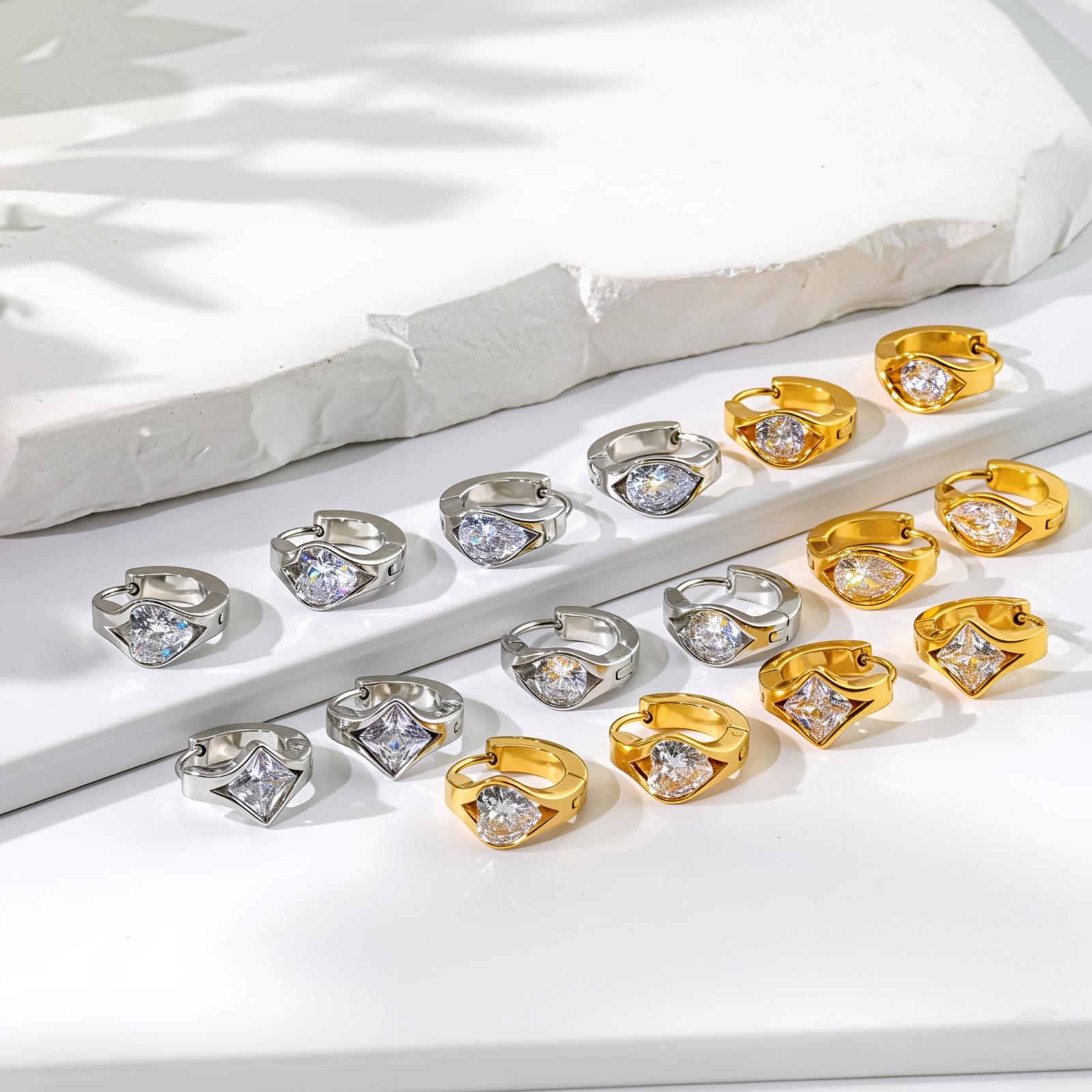 Product information "Classic Geometric Zircon Stud Earrings - Stainless Steel Jewelry in Round, Heart, Teardrop & Square Shapes"