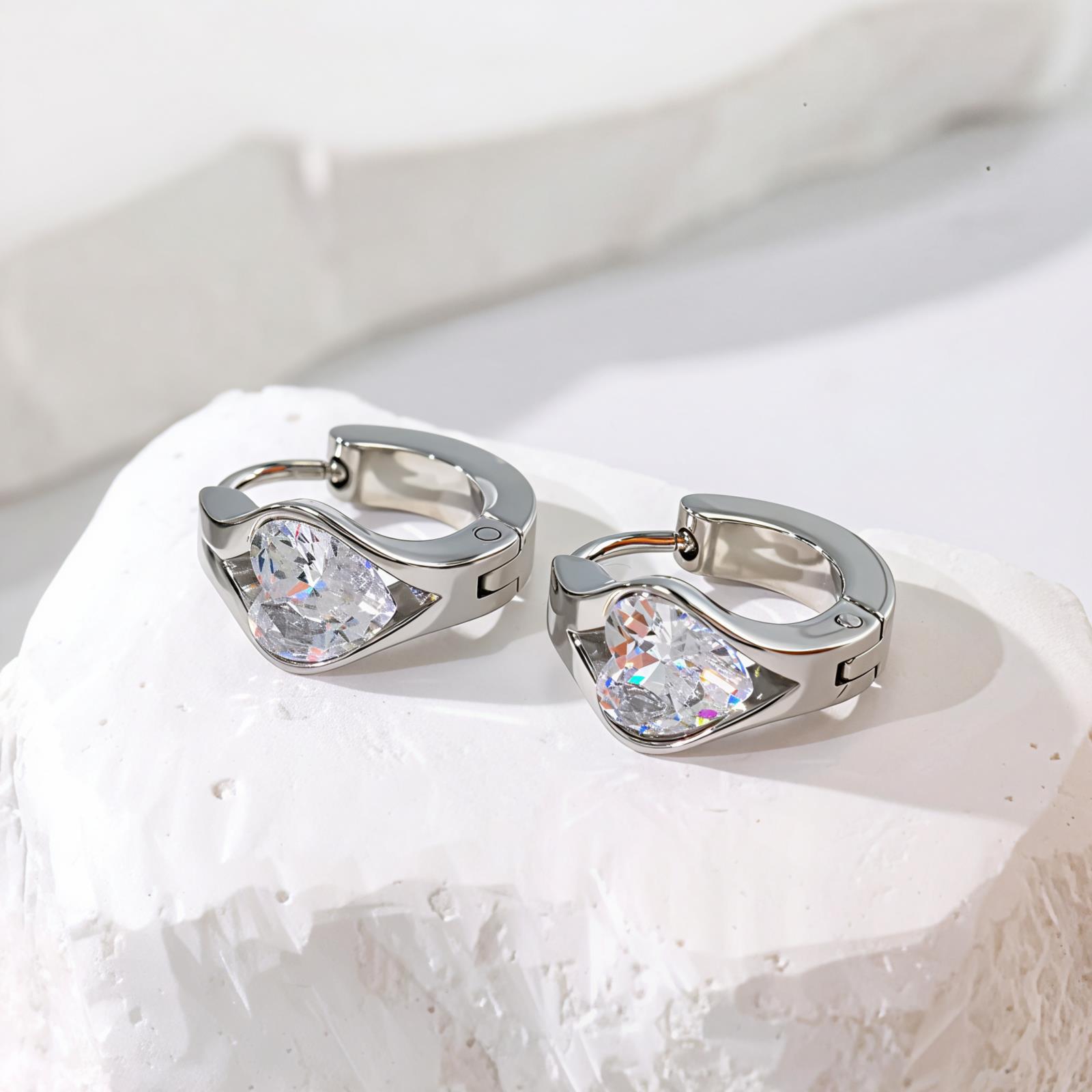 Classic Geometric Zircon Stud Earrings - Stainless Steel Jewelry in Round, Heart, Teardrop & Square Shapes