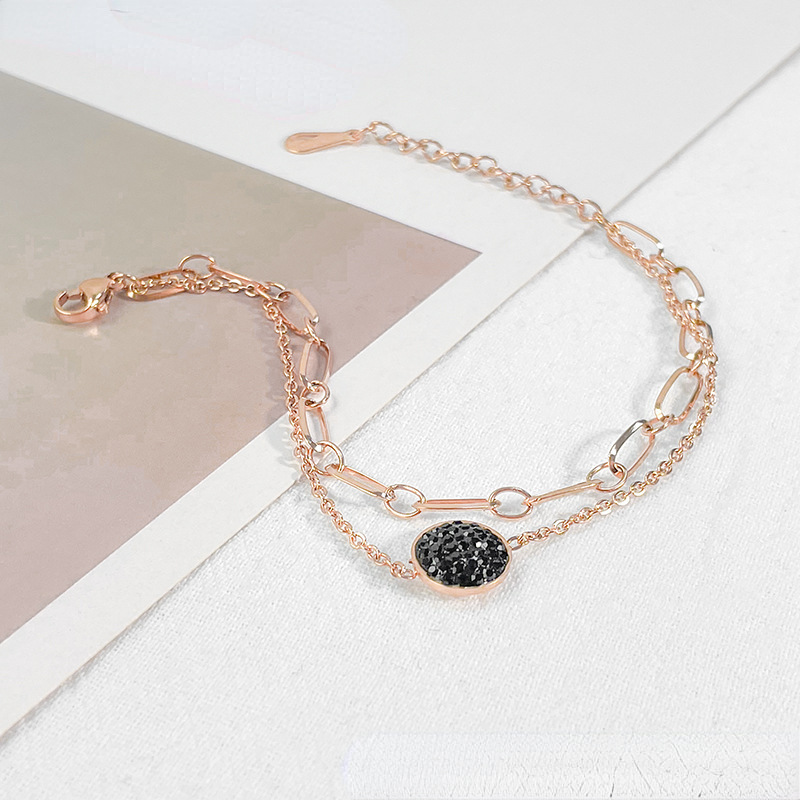 Double Layer Crystal Bracelet - Black & White Stone Design in Rose Gold, Gold & Silver