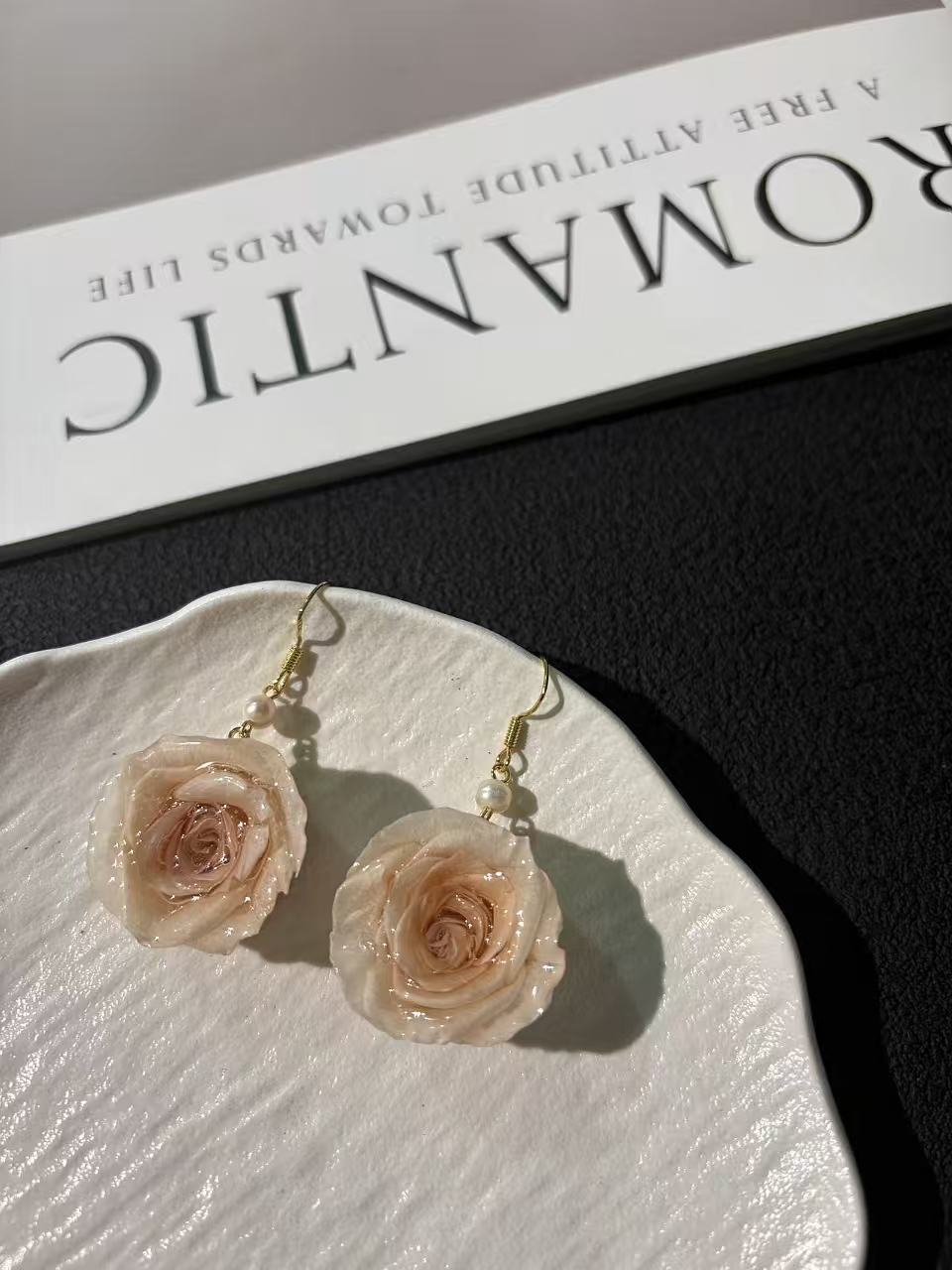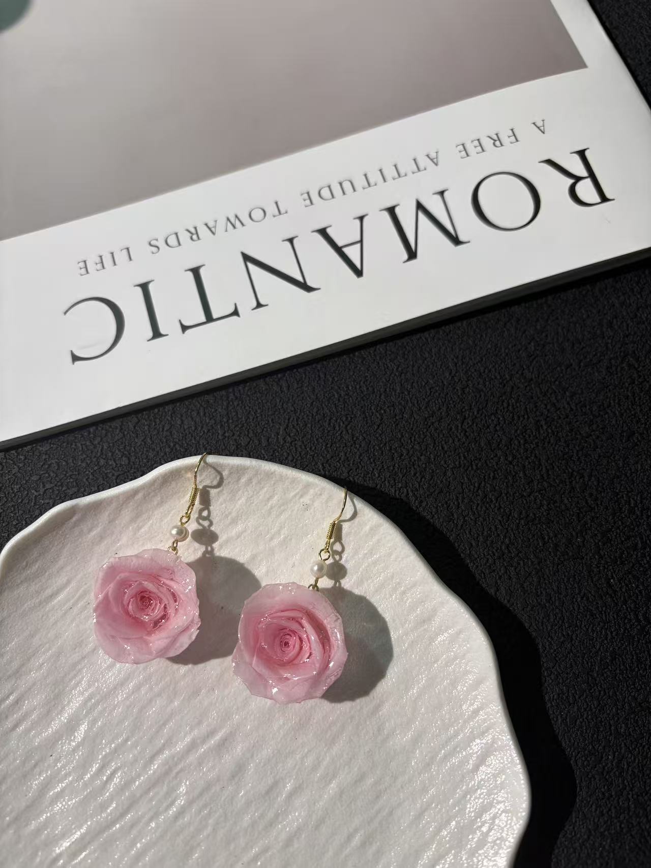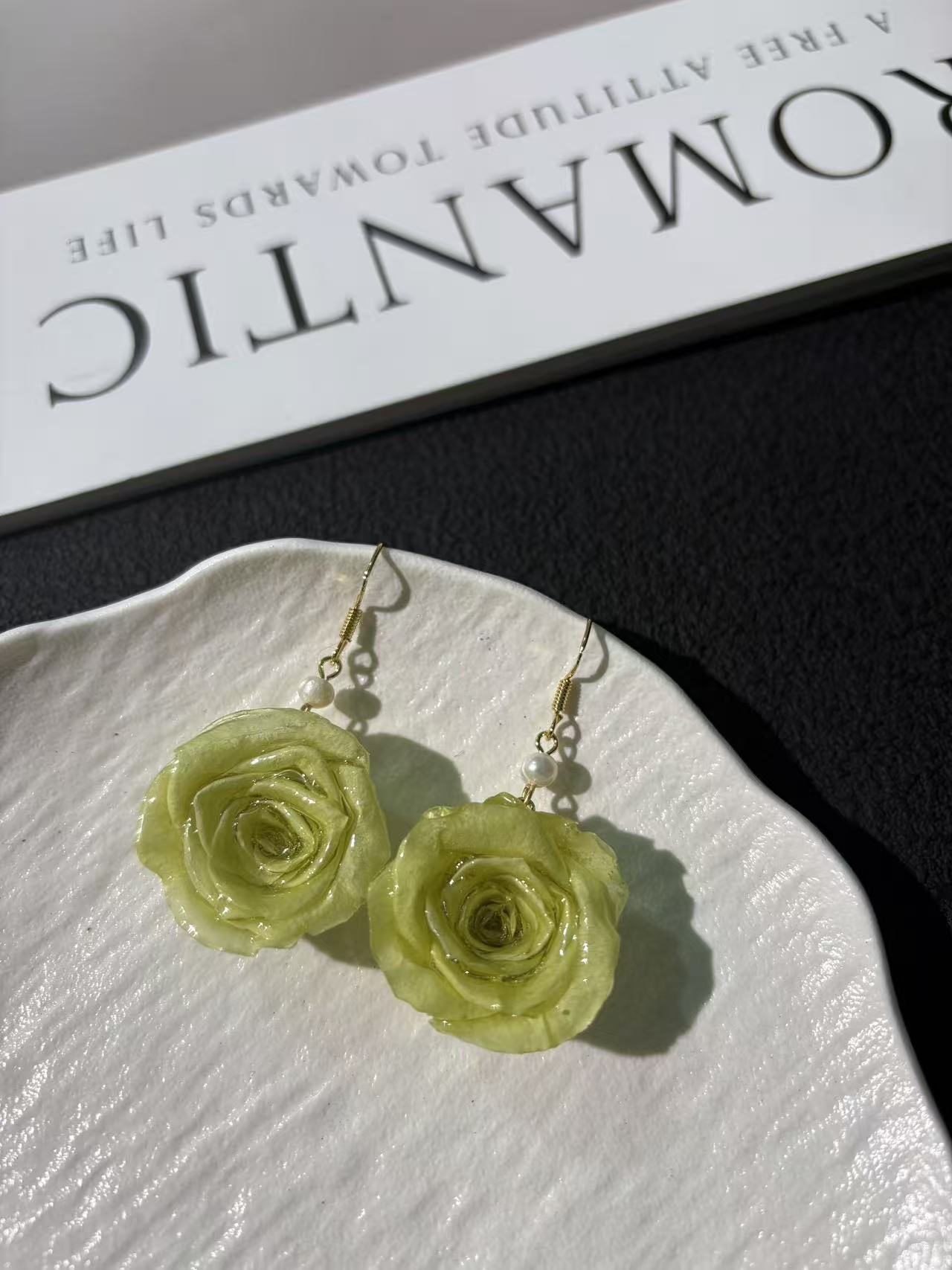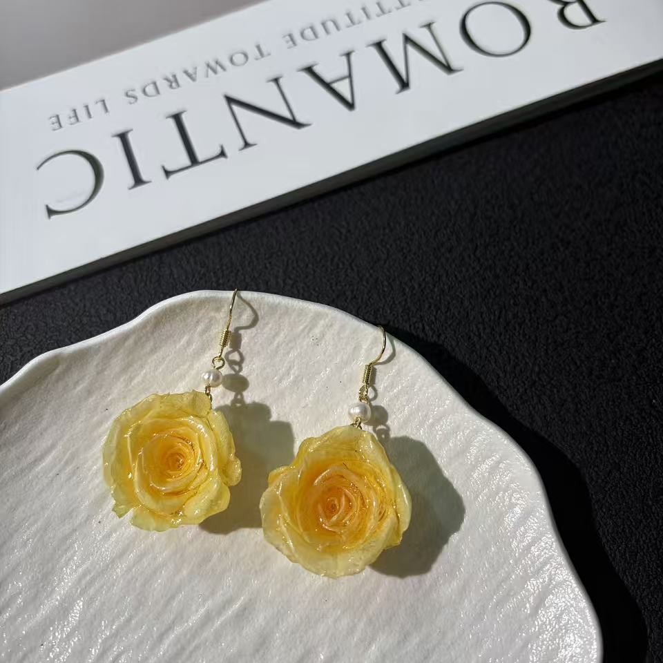 • Premium Ecuadorian Roses: Each earring features a genuine preserved rose imported from Ecuador, known for producing the finest quality blooms with velvety petals.