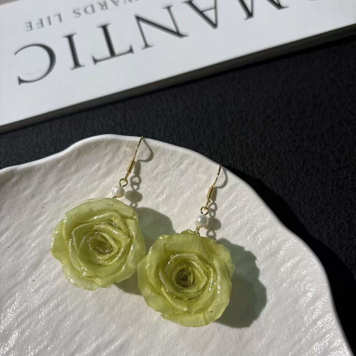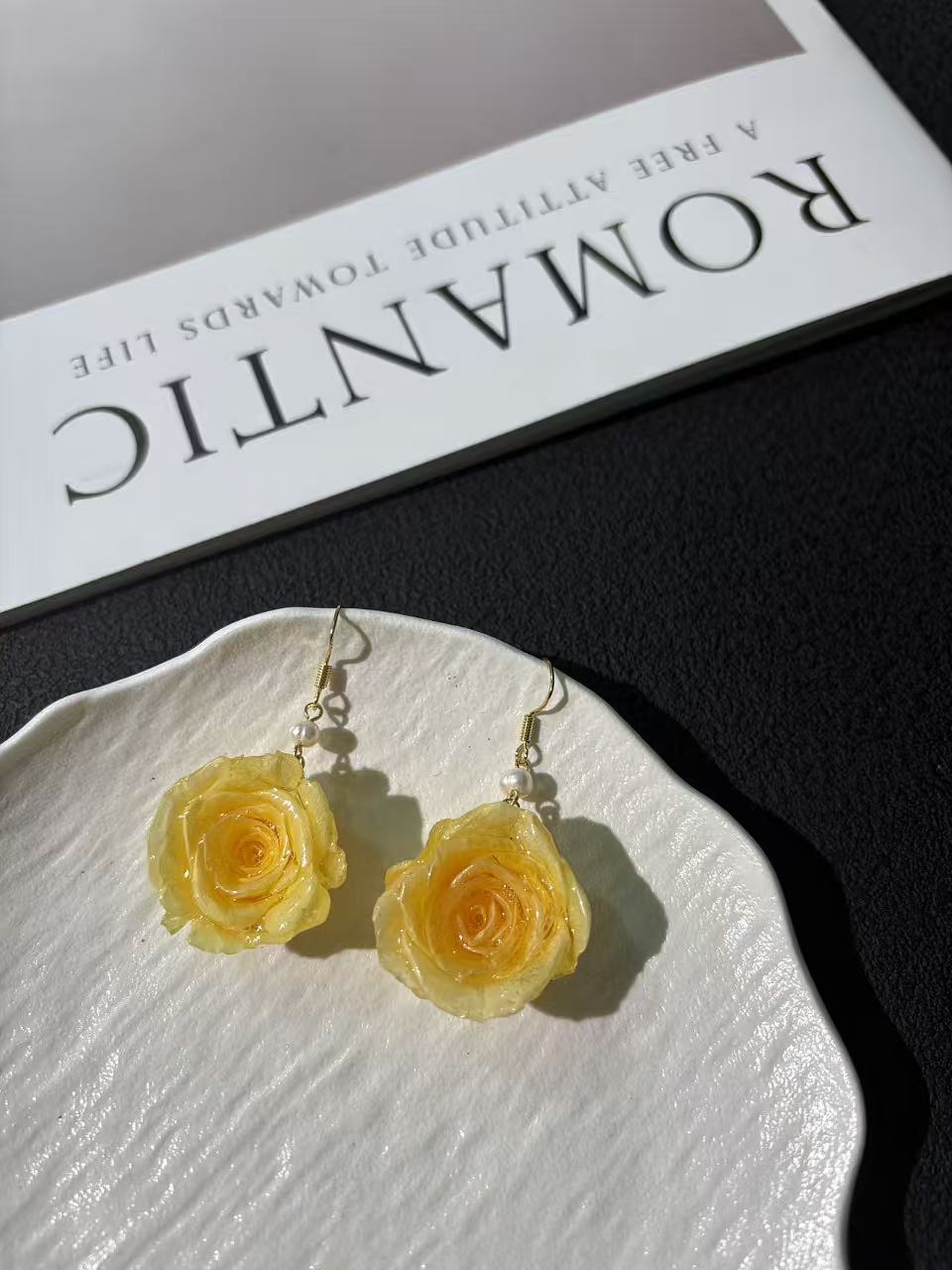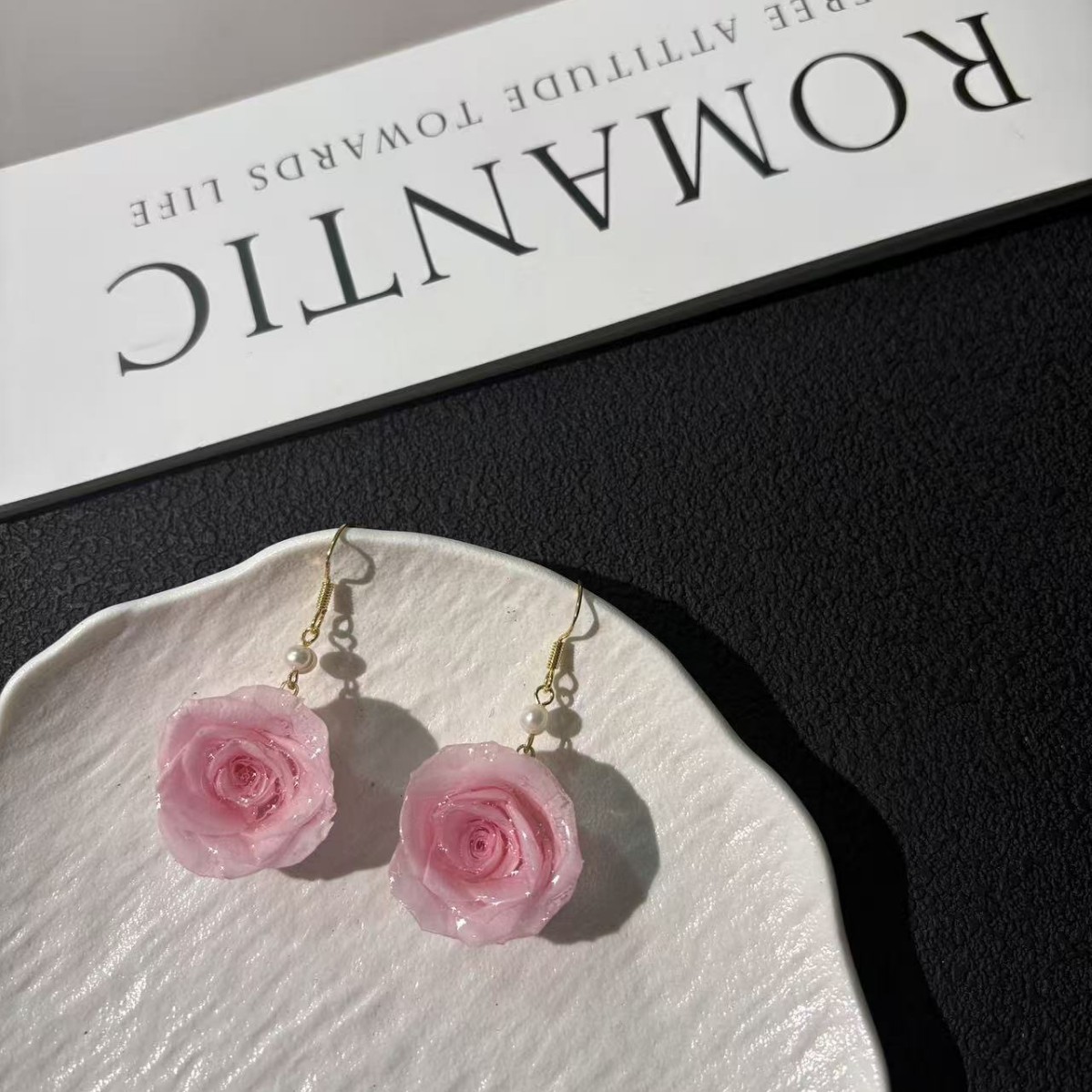 • Premium Ecuadorian Roses: Each earring features a genuine preserved rose imported from Ecuador, known for producing the finest quality blooms with velvety petals.
