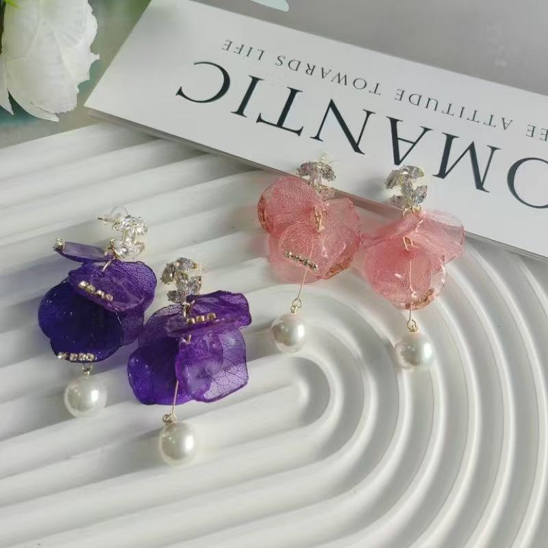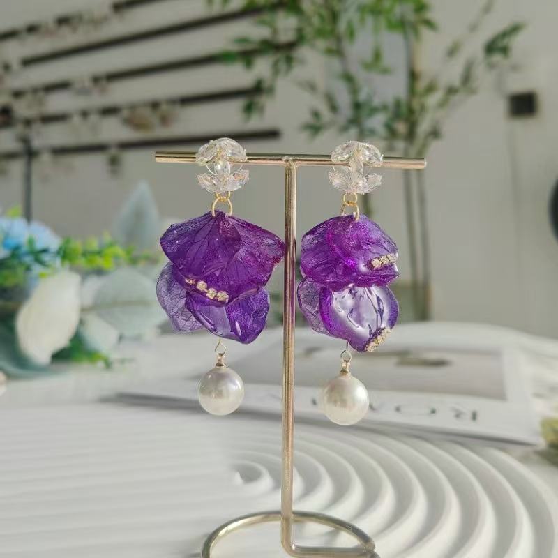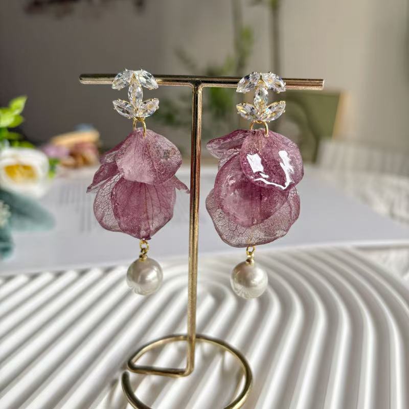 Embrace the gentle elegance of summer with our French Style Hydrangea Petal Tassel Earrings. These exquisite long drop earrings feature real preserved hydrangea petals, designed with a unique 'skirt hem' silhouette that flows gracefully with every movement. A perfect blend of sweetness and light luxury, making them an ideal choice for romantic dates or elegant gatherings.