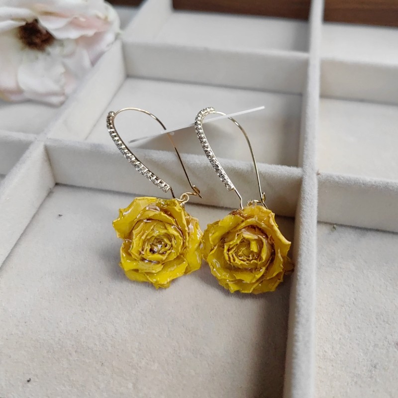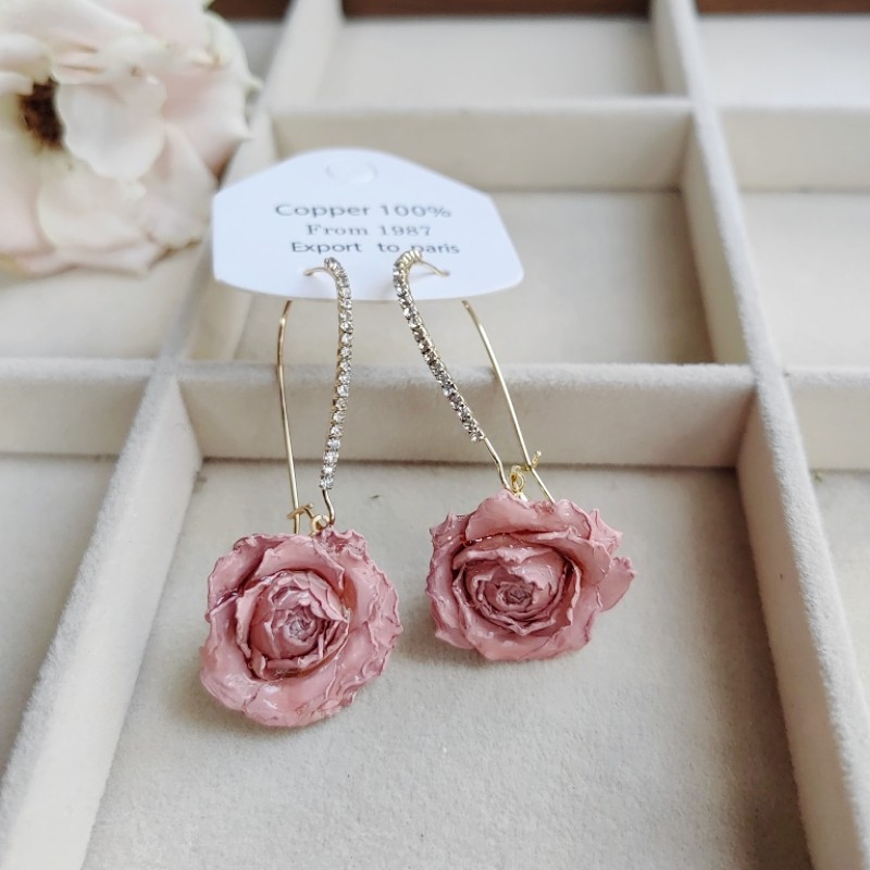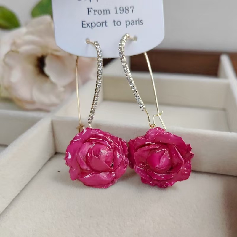• Real Preserved Roses: Each earring features a genuine preserved rose, carefully selected and treated to maintain its natural beauty and soft texture.