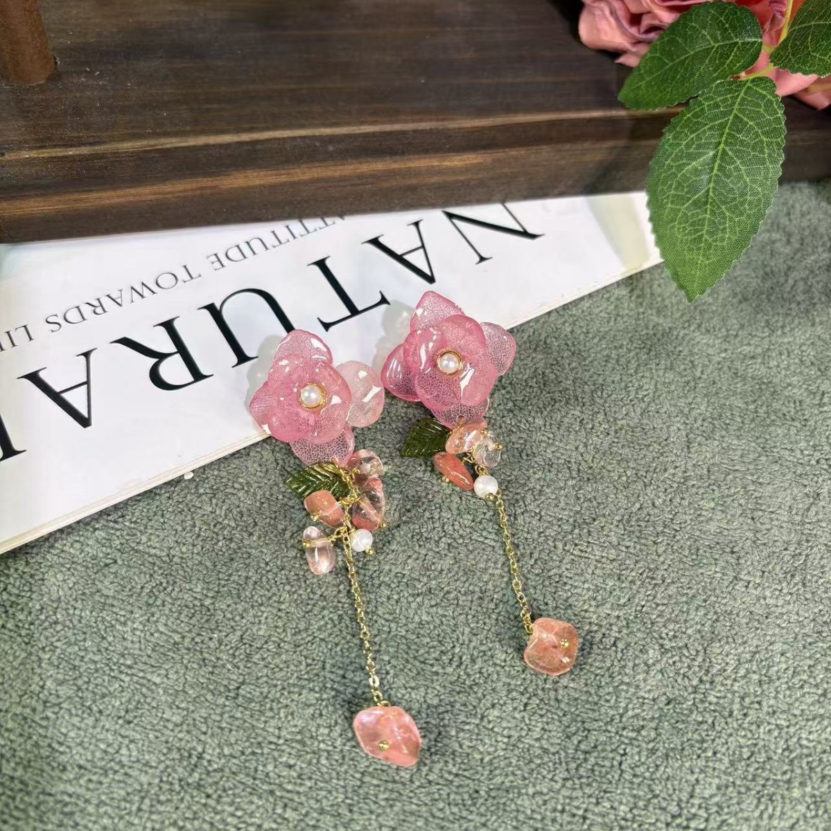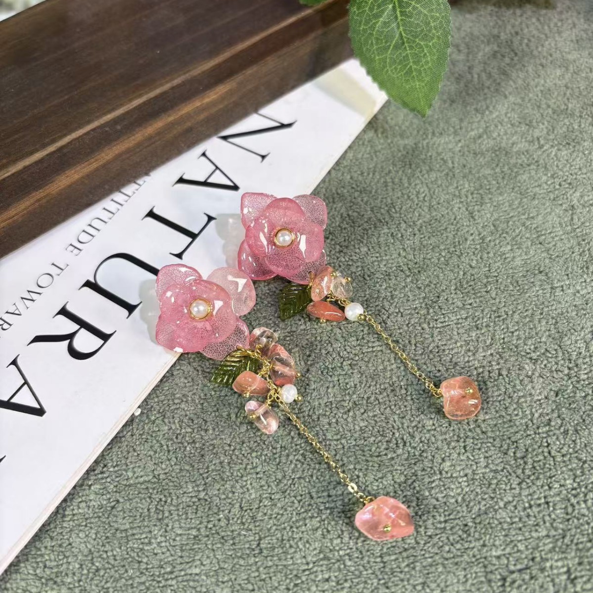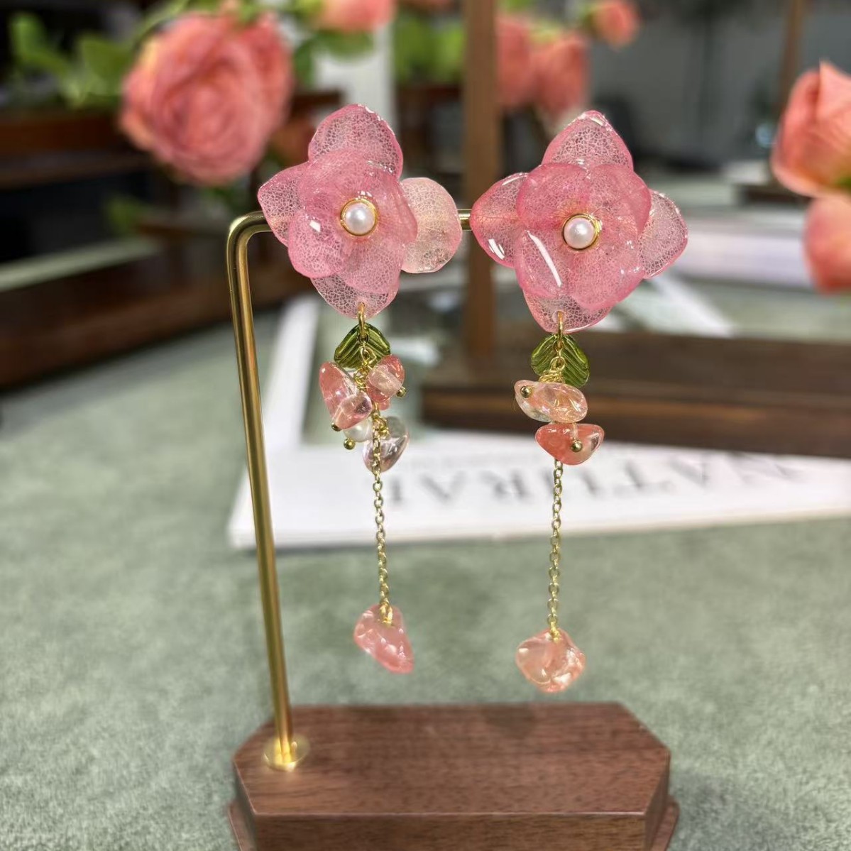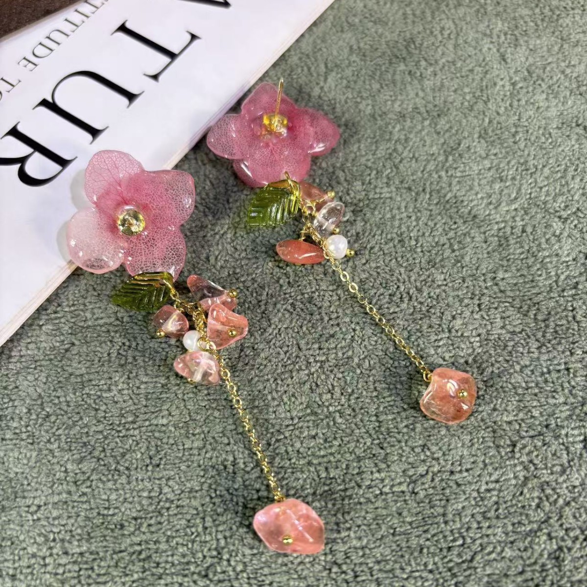 Immerse yourself in the delicate beauty of our Handmade Hydrangea & Natural Stone Earrings. This unique piece combines the soft romance of preserved flowers with the earthy elegance of natural gemstones, creating a look that is both sweet and sophisticated.