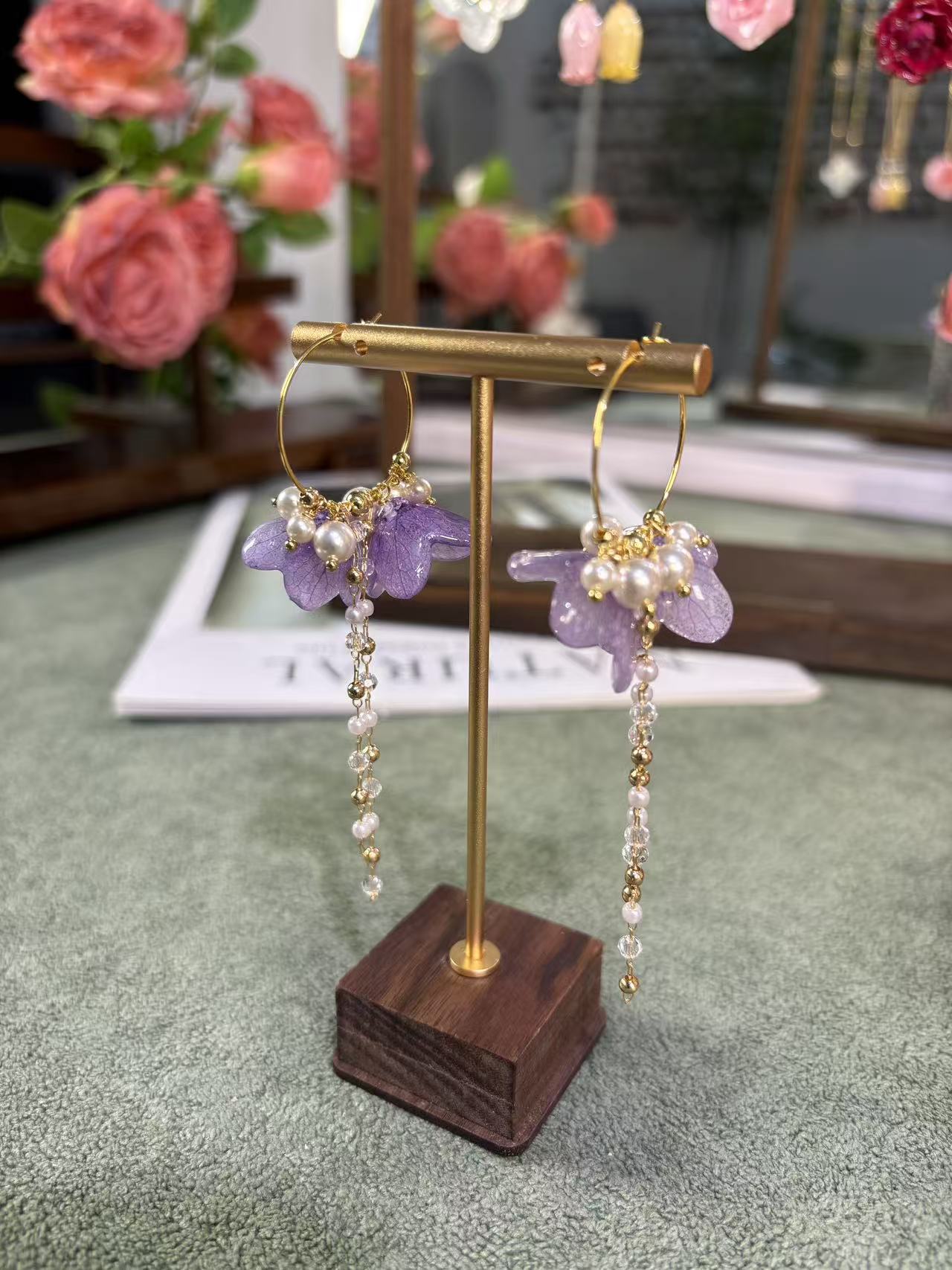 Discover the delicate charm of our Handmade Hydrangea Resin Hoop Earrings. These earrings perfectly capture the fleeting beauty of nature, encasing real dried hydrangea flowers in crystal-clear resin. The addition of elegant tassels adds movement and a touch of romance, making them a standout accessory for any occasion.