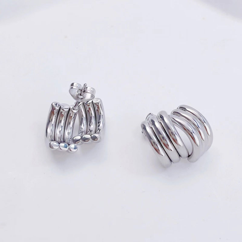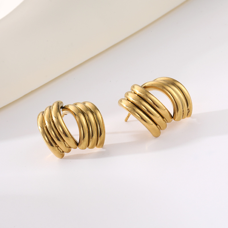 Elevate your everyday style with our Layered C-Shape Geometric Stud Earrings. A perfect fusion of modern minimalism and architectural design, these earrings feature a distinctive open 'C' silhouette composed of multiple sleek, parallel bands. This layered construction creates a sense of depth and movement, offering a sophisticated update to the classic stud. Available in warm gold and cool silver tones, they are crafted from premium stainless steel for enduring beauty and comfort.