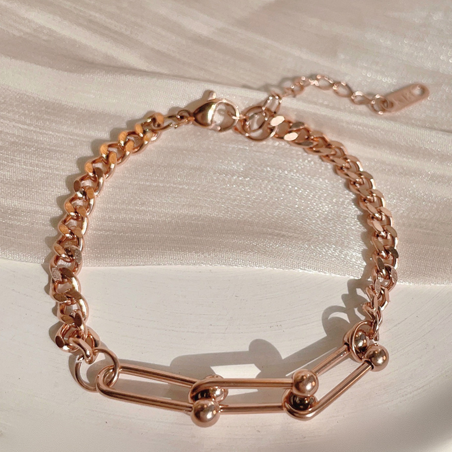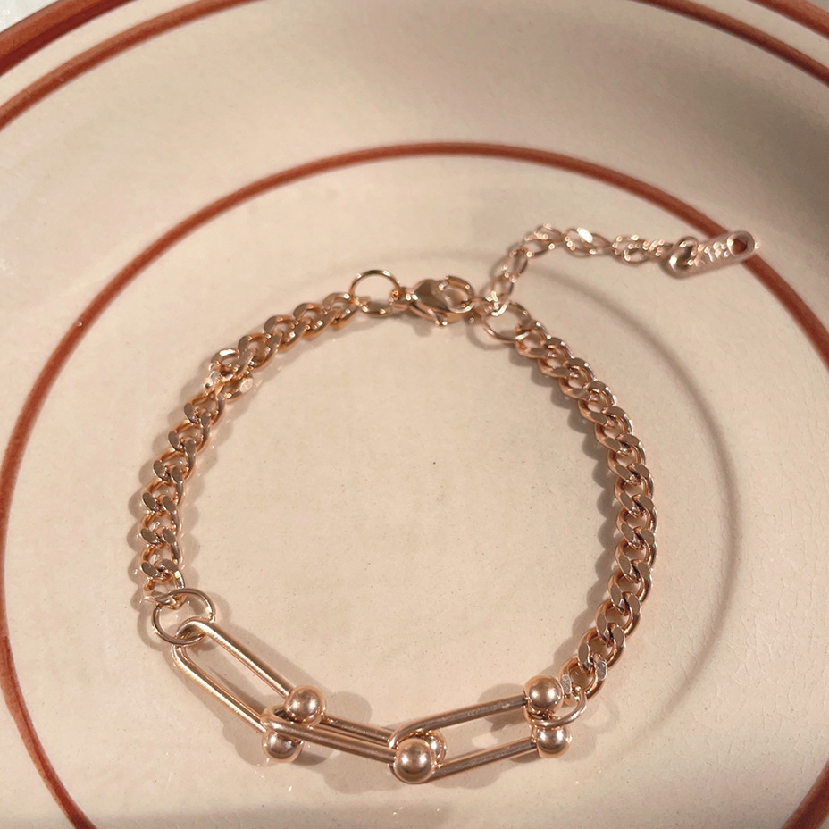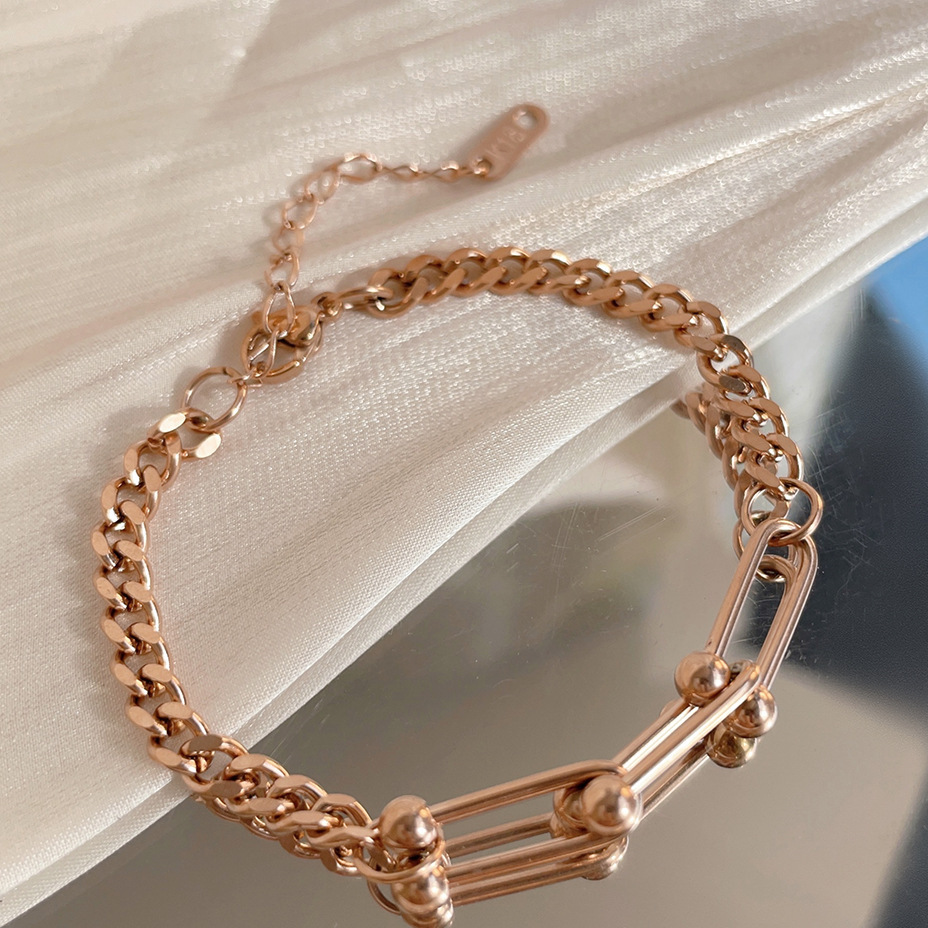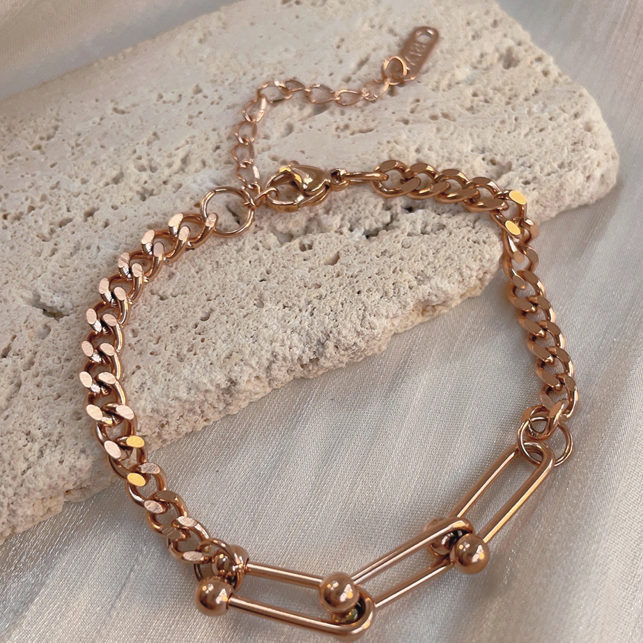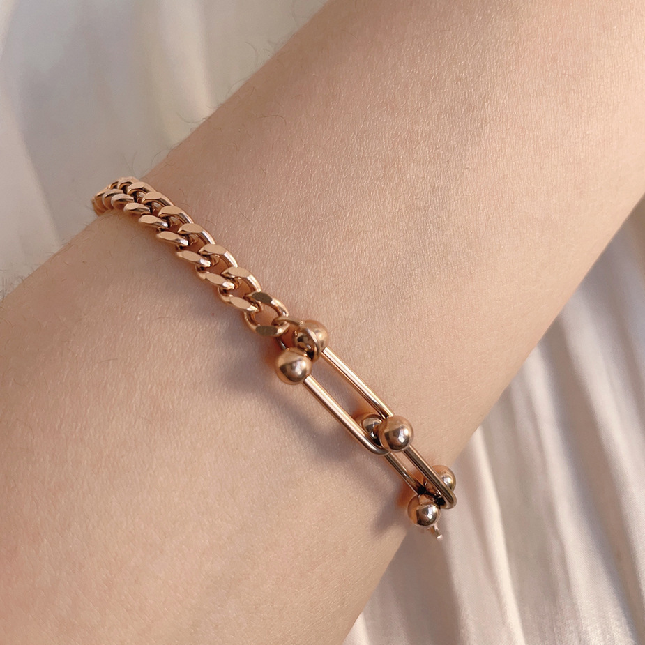 Minimalist 3-Bead Link Bracelet - Unisex Titanium Steel Chain in Rose Gold & Gold