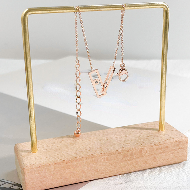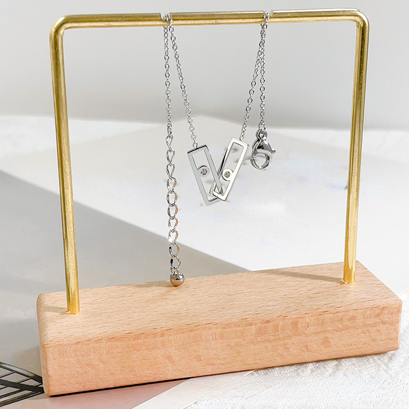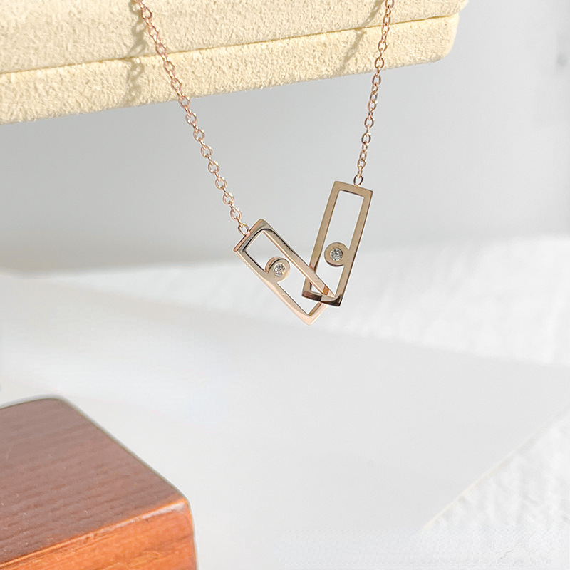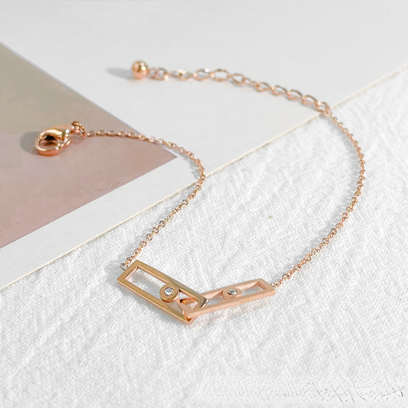 Minimalist Double Ring Zircon Bracelet - Geometric Titanium Steel Chain in Rose Gold & Silver